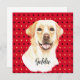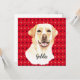 Watercolor portrait style illustration of Labrador Retriever dog on red, black and gold harlequin background. Personalize with name or special message