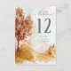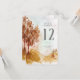 Peaceful landscape scenery of rolling hills and majestic trees is used in this wedding stationery collection to set a warm and intimate tone for your wedding. A handwritten, signature font combined with a modern sans serif adds an elegant touch. The wedding table number card shown here features a watercolor landscape in shades from golden yellow to rusty red. Add your table numbers, names and wedding date using the provided template. Search ID786 to see other pieces and color choices for this set.
