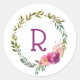 Watercolor Laurel and Flower Monogram Wreath Classic Round Sticker