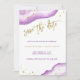 These elegant, modern save the date invitations feature watercolor lavender geode stones, with faux gold typography and splashes.