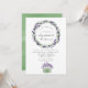 Trendy lavender wedding rehearsal dinner invitation with sage green watercolor wash background.