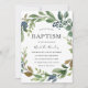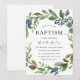 Watercolor Leaf Wreath Modern Baptism Christening Invitation