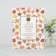 This autumn family reunion invitation flyer for a camping weekend jamboree with barbecue and potluck picnic features your custom reunion event details with family monogram atop a colorful pattern of watercolor Oak, Maple, Chestnut, Cottonwood and Sweetgum leaves in orange, red and gold - by katz_d_zynes