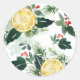 Watercolor Lemon and Holly Pattern Christmas Classic Round Sticker