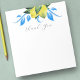 This botanical notepad features watercolor lemons in shades of yellow with blue and green botanicals. The words "Thank You" are set in trendy hand lettered script typography. Use for budget thank you notes. To see the matching blue and yellow Mediterranean wedding suite visit www.zazzle.com/dotellabelle