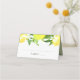 A watercolor of lemons with greenery and lemon blossoms is featured on these pretty wedding place cards.