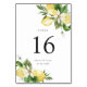 Watercolor Lemon Citrus Greenery Wedding Table Number