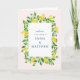This wedding invitation collection suite is beautifully designed with watercolor illustrations of fresh lemons and leaves. The mixed colors of the watercolor create a calming and elegant backdrop for the design suite. The fonts used for the text are sleek and refined, adding a touch of sophistication to the design.