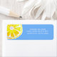 This return label features a watercolor lemon half and a blue background.
