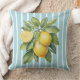 Watercolor Lemons on Blue Striped Background Throw Pillow