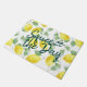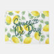Cute watercolor lemons patterned doormat with the phrase "Squeeze the Day" in green script.