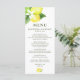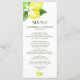 Watercolor lemons with greenery and lemon blossoms is featured on this pretty wedding menu. Personalize with the your names, wedding date and menu. The reverse is coordinated in yellow