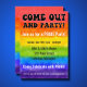 June is LGBTQ PRIDE month, if you plan on hosting a celebration this colorful design is for you. With the words "Come out and party", a water color rainbow, and easy to customize text your friends and family will be sure to get excited about your upcoming party.