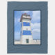 Nautical themed design with watercolor lighthouse decoration in dark blue frame. It is possible to change the background color and to add different one to the design with your choice.