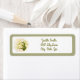 This return address label features three watercolor white lilies on a white center, with a medium green colored background. The text on this label can be customized and used as either a return address label or can be used as a gift tag!