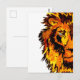 traditional watercolor painting of half the face of a male lion in brown and ocher colors on a postcard