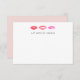 Chic flat notecards for your lip color distributor business feature your name or business name topped by a trio of watercolor lips illustrations in shades of pink, violet and red. Cards reverse to solid blush pink.