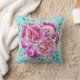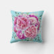 Watercolor Lush Pink Peonies & Green Teal Leaves Throw Pillow