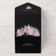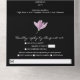 Elegant watercolor white and purple magnolias on a black background accent these tri-fold wedding invitations with your details in chic lettering in sections on the front and back and a detachable RSVP card for guests to complete and return. **REMEMBER to put a stamp on the RSVP card section and include envelopes on your order to mail invites! MATCHING items in our store.