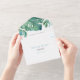 New modern botanicals tri-fold invitation in a contemporary design. Details are set in a trendy hand letter script typography in sea glass blue with a traditional serif face font. A replica of my original hand painted white magnolia flower and tropical Florida greenery monstera leaves frame your wedding details. Customize each flap with your personal information. Perfect for tropical beach weddings or simple elegant, luxurious wedding. To see more tropical wedding invitations with rsvp cards and envelopes by Victoria Grigaliunas visit www.zazzle.com/dotellabelle