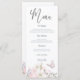 A pretty border of Magnolias in soft pastel watercolors in white and pink and greenery runs along the bottom edge on the front with a butterfly motif and the florals also border the bottom edge on the back. The main header Menu is in an elegant set script black typography. The rest of the text you can easily personalise and also change the font and color of this editable text if you wish via the Click to Customize Further option.