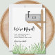 Let family and friends know your new address with this rustic moving announcement card. It is decorated with a watercolor mailbox, green grass, and stylish script typography. You can add your house number. Original Watercolor © Michele Davies.
