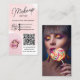 A Modern makeup logo Qr code 2 photos featuring a cool modern brush script font with 2 photos, qr code for price list and infos, logo and social media with a pink abstract watercolor brushstroke