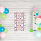 This design features assorted beauty care tools in a soft watercolor pattern.