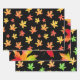 Watercolor Maple Leaf Patterns Black Background Wrapping Paper Sheets