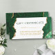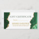 Modern Elegant Watercolor Emerald Green and Gold Marble Agate Geode Business Gift Certificate.