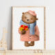 Watercolor Marley Flower Bear | Bear Wall Print - Your child's love for animals will brighten up our adorable Watercolor Marley Flower Bears Wall Art print, assured to charm any nursery or bedroom.