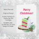 Indulge in the festive spirit with our elegant Christmas card showcasing a layered cake adorned with holly, pine cones, and branches. Perfect for sharing warm wishes with family, friends, and co-workers. Merry Christmas artwork by Daphsam.