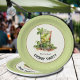 Elegant derby party paper plates feature a watercolor mint julep with a bright green and ivory patterned border and your personalization. MATCHING items in our collection.