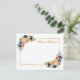 Modern Elegant Watercolor Floral and Greenery Personalized Note Card includes golden yellow, peach, blue and burgundy flowers and roses, botanical greenery on a gold frame.