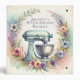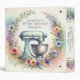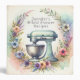A sophisticated and charming design for a bridal shower recipe binder front, featuring a vintage-style kitchen mixer surrounded by a wreath of colorful wildflowers. The mixer is painted in a pastel shade, elegantly contrasting with the vibrant hues of the flowers. Above the mixer, the words 'Bridal Shower Recipes' are gracefully written in a cursive font, adding a touch of elegance. The background is a soft wash of pastel tones, seamlessly blending with the overall design, creating a warm and inviting feel perfect for a bridal shower.