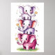 Watercolor modern 3 elephant with flower2 poster