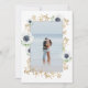 Modern watercolor artwork featuring a beautiful frame of anemone flowers, starfish, buds and twigs. Elegant font combo. White, deep blue, gold (not real gold but color). Custom photo in the same frame on the back side.