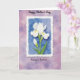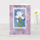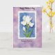 This card shows a calm floral illustration centered on a white flower with softly unfurling petals and a pale yellow center, like a gentle little secret ❤️. Bright green leaves and a small bud lean in close beside it, adding a quiet sense of closeness, as if they’re keeping each other company. The flower sits inside a soft rectangular frame with torn-looking edges, like a keepsake border saved from a special note. That inner frame is washed in light blue tones, giving the middle area a cool, soothing contrast. Around it, the background fades into mottled lavender and misty purple watercolor textures that feel airy and tender. A short message appears above the framed flower and another line sits below it, both in a dark ink tone that stands out clearly without overpowering the art 🌼. The blue border has uneven, ragged edges that look lightly brushed and slightly faded against the purple wash.