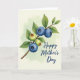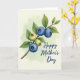 This greeting card features a soft watercolor-style illustration of a berry sprig set on a pale, creamy background that fades into a light green haze. A slender branch runs diagonally across the front, with lush green leaves that seem to lean toward one another like close friends sharing a quiet moment ❤️. Three rounded deep-blue berries sit near the center, each with a dusty sheen and a small star-shaped crown that adds a tender, jewel-like detail. Two smaller green berries nestle nearby, their lighter tone suggesting they’re still growing, creating a gentle contrast that feels like care in progress. The lighting looks diffuse and airy, with translucent washes that soften edges and give the scene a calm, intimate mood 🌼. Near the bottom, a short message appears in dark blue lettering, centered beneath the branch and spaced with plenty of open background around it. The berries show distinct calyx shapes, with the deepest blue fruit clustered closest together along the diagonal stem.