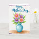 This card features a vertical watercolor-style illustration with a bouquet of blossoms gathered in a teal vase, set on a warm, earthy tabletop that feels like a cozy spot for a shared note ❤️. Soft pink and gentle lavender flowers open outward, each one circling a sunny yellow center that draws the eye like a little spark of affection. Curving green leaves weave between the stems, giving the arrangement an easy, natural closeness, like friends leaning in for a photo. Near the top, a short Mother’s Day message appears in medium-blue lettering, centered above the bouquet against the open white space. The vase has subtle shading and a light sheen, grounding the flowers while keeping the look airy and calm. The background stays mostly white, letting the colors stand out without feeling busy, and the overall layout keeps the bouquet as the main focus. Soft purple watercolor washes lightly frame the top and bottom edges, with a small 🌼 accenting the gentle palette. The purple wash is most noticeable as a faint band near the upper border and another near the lower border, fading softly into the white.