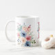 A floral personalized coffee mug with a name and rose pink monogram letter "K", and with a decorative watercolor foliage and flowers.