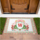 Watercolor Monogram Initial Plaid Santa Crest Doormat