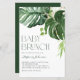 Invite guests to your event with this customizable baby brunch stationery invitation. It features watercolor illustrations of monstera leaves with faux gold foil accents. Personalize this tropical baby brunch invitation by adding name, time, date and other event details. This greenery baby brunch invitation is perfect for summer baby showers.