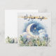 Watercolor Moon Greenery Gold Eid Mubarak Arabic Holiday Card
