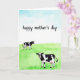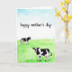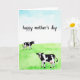This card shows a soft watercolor countryside scene with a pale blue sky fading into a rich green field, creating a calm backdrop for a sweet moment ❤️. In the foreground, a larger black-and-white cow faces forward, its uneven dark patches standing out against a white coat like a cozy quilt. Its small pink snout and gently shown udder add a nurturing touch, as if it’s watching over the space with quiet care. Farther back, a smaller cow stands in the field, angled slightly toward the front figure, giving the scene a subtle sense of companionship. The two animals feel connected through their spacing and calm poses, like old friends sharing the same peaceful morning. Near the top, a hand-lettered message sits across the sky in dark lettering, centered and easy to spot against the light wash 🌼. The watercolor texture is visible throughout, with soft brushy edges in the clouds and layered strokes in the grass. The field shows deeper green bands near the bottom, while the sky remains airy with faint, watery gradients above.