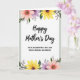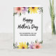 Designed with a white rectangular panel framed by a muted sage-green border, this card feels calm and welcoming ❤️. Across the upper portion, “Happy Mother’s Day” appears in flowing black lettering that leans like a gentle embrace. Centered beneath it, the message continues in smaller black all-caps text reading, “TO A DAUGHTER-IN-LAW WHO MEANS SO MUCH,” giving the layout a caring, family-focused tone. Floral clusters mirror each other at the top and bottom edges, like two bouquets meeting in the middle to show closeness. The blossoms look watercolor-soft in peach, yellow, and lavender, with darker, textured centers that add depth. Slender dark branches and layered green leaves weave around the flowers, suggesting a tender, thoughtful connection between the elements 🌼. The pastel petals sit against the bright white space while the sage border quietly outlines the whole design with a thin, even frame.