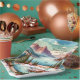 Pretty watercolor mountain view scene wedding personalized paper plates. Colors are blue, green and brown. Add bride and groom's names and wedding date in the personalize area.