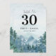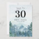 Theme Parties' rustic watercolor mountains wedding table number design features watercolor trees and mountains set on a dusty blue watercolor background. It includes the bride's and groom's names and the event or wedding date. The typography pairs traditional lettering with modern hand-lettered text. #RusticWedding #DustyBlueWedding #TableNumbers