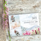 Mountain Meadow wedding save the date photo card with idyllic country landscape of blue ridge mountains and pink wildflower meadow. Your pictures are displayed in landscape format and, if you have any trouble with placement, try cropping them to landscape and re-upload. Beautiful nature inspired scenic design - perfect for outdoor destinations, mountain lakeside and country park retreats or dusty blue gray and pink color themes. Please browse my Mountain Meadow collection for matching items or message me to create the templates you need.