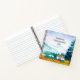 A beautiful watercolor mountain scene forms the backdrop for a teal car and cute vintage teardrop camper on our eye-catching notebook for keeping track of your campground stays, new camping friend addresses, recipes and more. Text on front of the notebook is customizable and the current words say, "Stephanie's Camping Notes 2018."